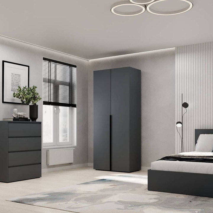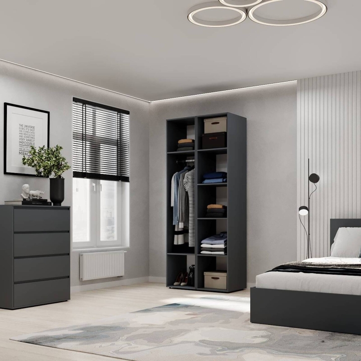 Модель ідеально підійде для спальні, передпокою чи гардеробної кімнати, де важливо підтримувати порядок і зберігати речі компактно Завдяки прямій формі шафа легко впишеться навіть у невеликі приміщення. Поверхні легко очищуються, не втрачаючи привабливого вигляду з часом.