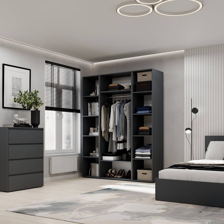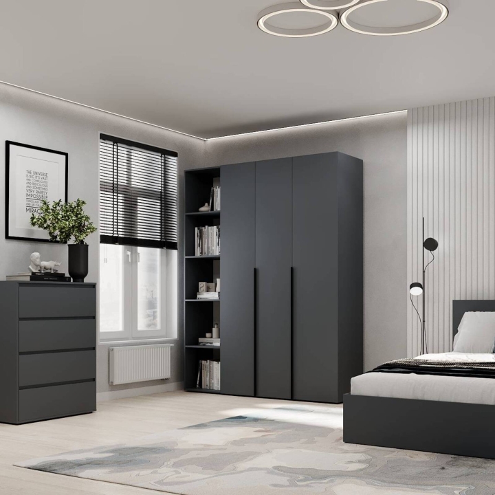 Модель ідеально підійде для спальні, передпокою чи гардеробної кімнати, де важливо підтримувати порядок і зберігати речі компактно Завдяки прямій формі шафа легко впишеться навіть у невеликі приміщення. Поверхні легко очищуються, не втрачаючи привабливого вигляду з часом.