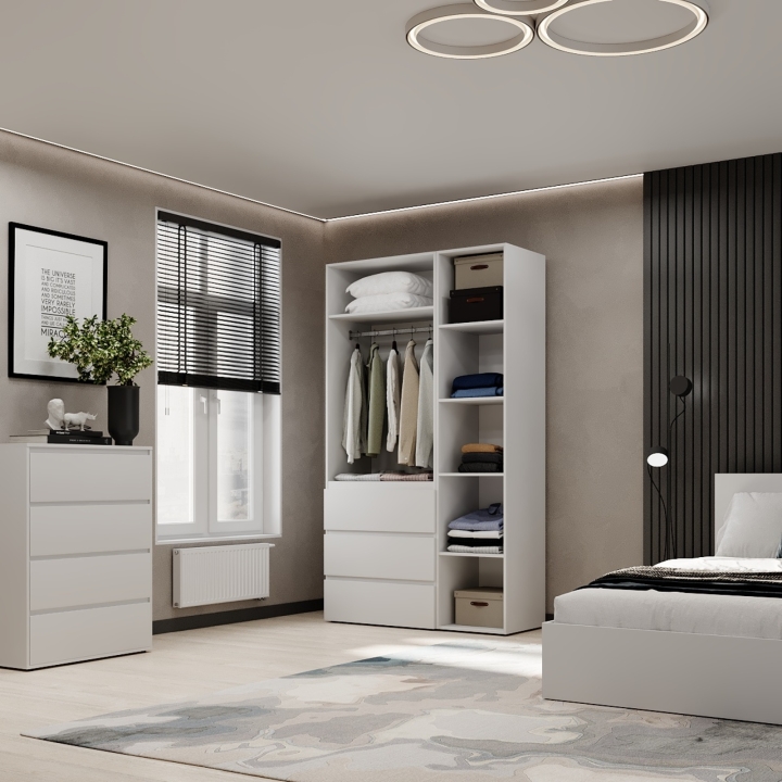Модель ідеально підійде для спальні, передпокою чи гардеробної кімнати, де важливо підтримувати порядок і зберігати речі компактно Завдяки прямій формі шафа легко впишеться навіть у невеликі приміщення. Поверхні легко очищуються, не втрачаючи привабливого вигляду з часом.