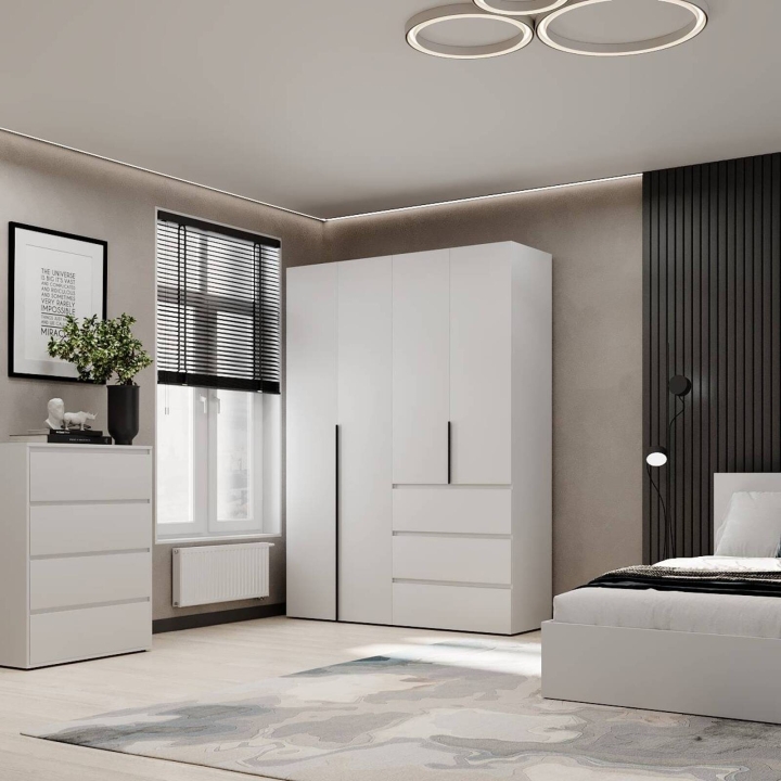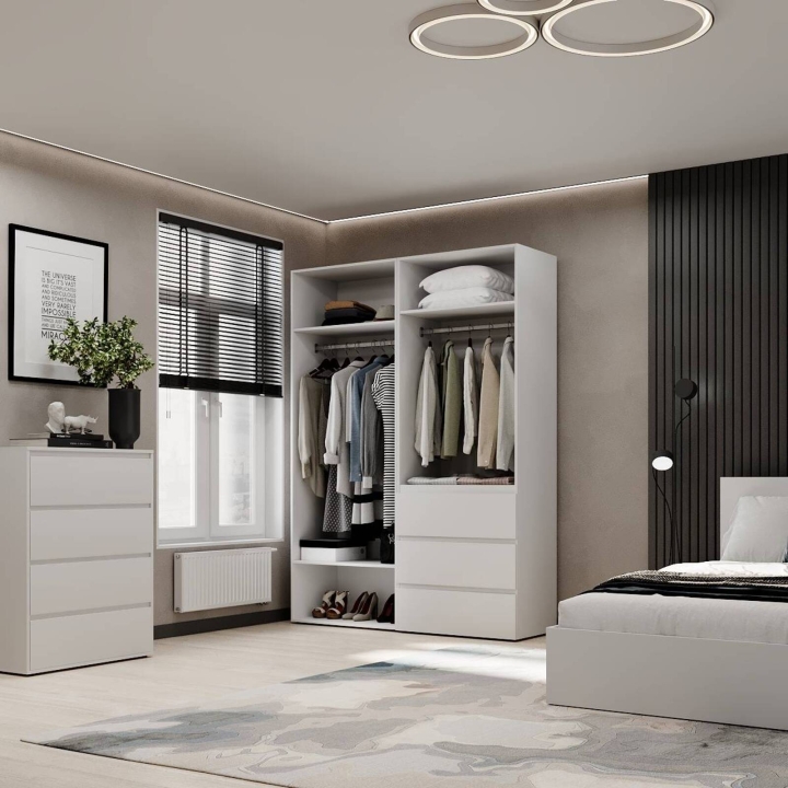 Модель ідеально підійде для спальні, передпокою чи гардеробної кімнати, де важливо підтримувати порядок і зберігати речі компактно Завдяки прямій формі шафа легко впишеться навіть у невеликі приміщення. Поверхні легко очищуються, не втрачаючи привабливого вигляду з часом.