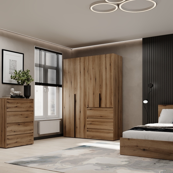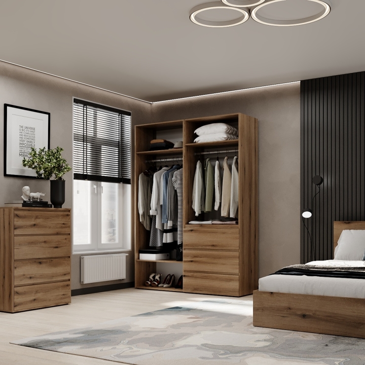 Модель ідеально підійде для спальні, передпокою чи гардеробної кімнати, де важливо підтримувати порядок і зберігати речі компактно Завдяки прямій формі шафа легко впишеться навіть у невеликі приміщення. Поверхні легко очищуються, не втрачаючи привабливого вигляду з часом.
