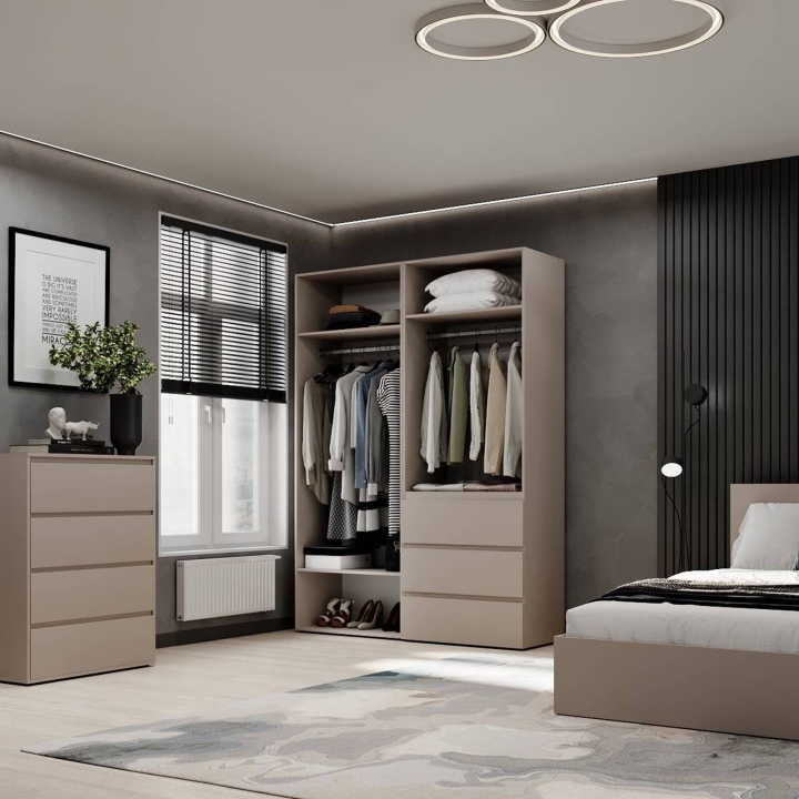 Модель ідеально підійде для спальні, передпокою чи гардеробної кімнати, де важливо підтримувати порядок і зберігати речі компактно Завдяки прямій формі шафа легко впишеться навіть у невеликі приміщення. Поверхні легко очищуються, не втрачаючи привабливого вигляду з часом.