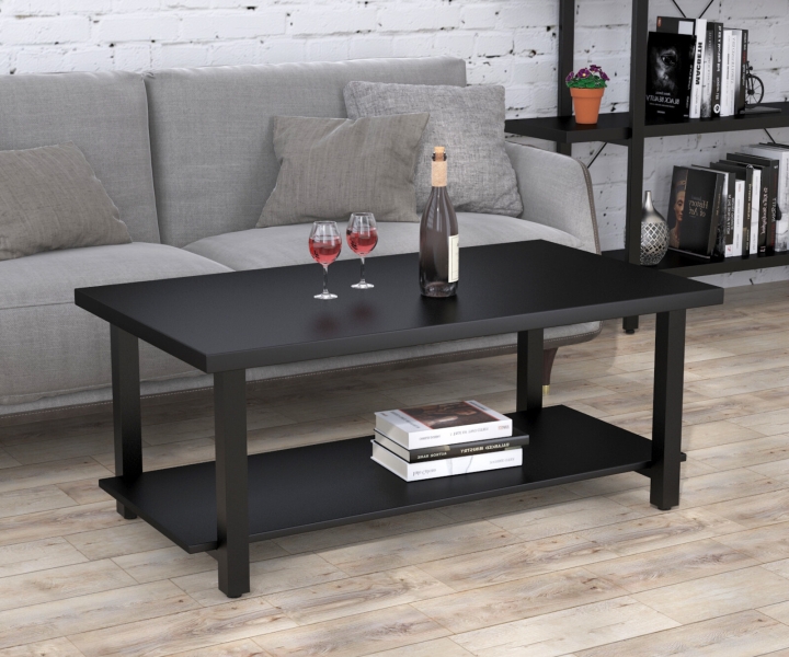 Столик состоит из двух цельносварных опор, столешницы и нижней полки. Опоры изготовлены из металлических труб толщиной 40х40 мм. Металл окрашен в черный цвет методом порошкового напыления. Благодаря такому покрытию поверхность металла выглядит более эстетично и имеет длительный срок службы. В основании установлены регулируемые ножки. Они позволят компенсировать все неровности поверхности, а также защитят от возникновения царапин и потертостей на поверхности пола. Столешница изготовлена из качественного и прочного ЛДСП толщиной 36 мм. Нижняя полочка имеет толщину в 18 мм. Из представленных цветов ЛДСП вы сможете выбрать именно тот, который подойдет под ваш интерьер. Столик благодаря своей конструкции может выдерживать большую нагрузку. Рекомендуем уберегать журнальный столик от влаги и высоких температур, чтобы он долгое время сохранял свой первоначальный внешний вид.