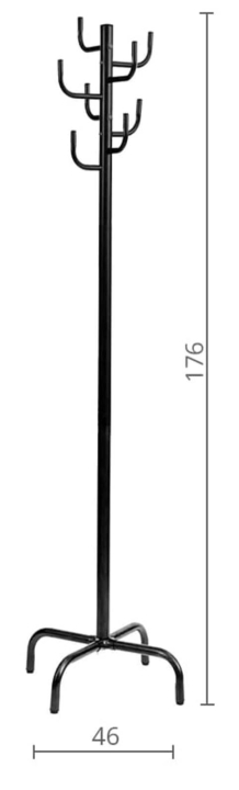 Вішак підлоговий АКЛАС Кактус VKY-6030B 176x46 (Чорний) виготовлений з металу, вкритий чорною попрошковою фарбою.