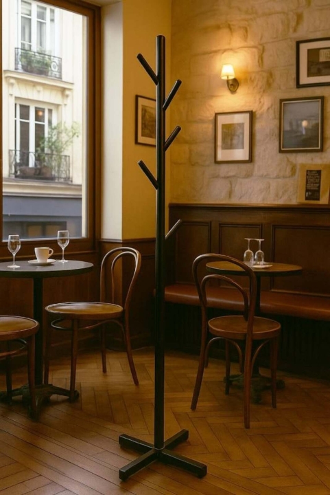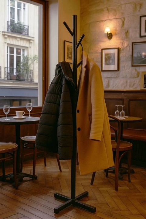 Гачки. На стійці розташовано 7 гачків для вішання одягу. Ці елементи мають пряму, дещо підняту форму і кріпляться до центральної стійки. Вони розташовані симетрично і на різних висотах вздовж стійки. Загалом 7 гачків які забезпечують достатньо місця для вішання.