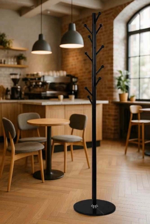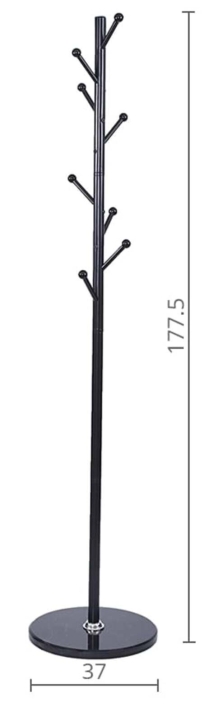 Вішалка має дуже міцну та стійку круглу основу, виконану у чорному кольорі з каменю. Широка та важка основа забезпечує відмінну стабільність, запобігаючи перекиданню вішалки, навіть якщо на ній багато одягу.