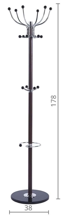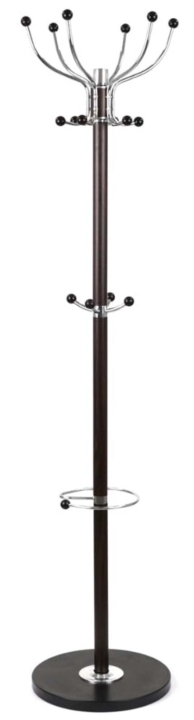 Вішак підлоговий АКЛАС Горобина VKY-6256 178x38 (Темно-коричневий). Ідеально підходить для прихожих, вестибюлів, офісів, готелів або будь-яких приміщень, де потрібне стильне та функціональне рішення для зберігання верхнього одягу, головних уборів, сумок та парасольок. Дизайн є поєднанням класичної елегантності та сучасної функціональності. Комбінація темно-коричневого кольору і блискучого хрому надає вішалці респектабельного та вишуканого вигляду.