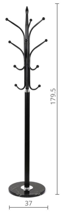 Основу вішака становить циліндрична стійка чорного кольору, яка виходить з круглої, стійкої основи з чорного мармуру, що забезпечує стабільність.
