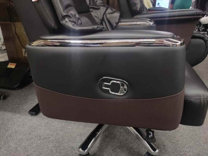 Підлокітники. Підлокітники вирізняється масивною закритою конструкцією з м’якою оббивкою та хромованими елементами, що забезпечує повну опору для передпліч та створює відчуття комфорту як у кріслі преміумкласу. Широка площа поверхні допомагає знизити навантаження на ліктьові суглоби та плечовий пояс, що особливо важливо під час тривалого відпочинку або роботи.